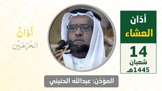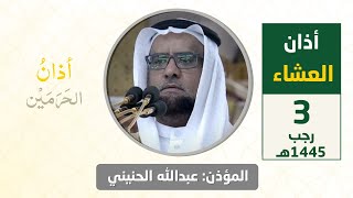 أذان العشاء للمؤذن عبدالله حطاب الحنيني الأربعاء 13 ذو الحجة 1445هـ