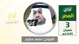 أذان العصر للمؤذن حسن خاشقجي الخميس 28 ذو الحجة 1445هـ