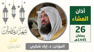 أذان العشاء للمؤذن د. إياد شكري الخميس 14 ذو الحجة 1445هـ