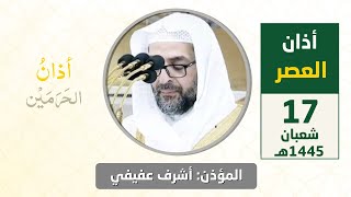 أذان العصر للمؤذن أشرف عفيفي السبت 4 محرم 1445هـ