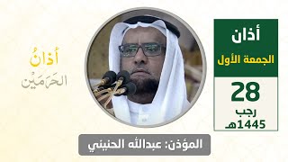 أذان الجمعة الأول للمؤذن عبدالله حطاب الحنيني 15 ذو الحجة 1445هـ