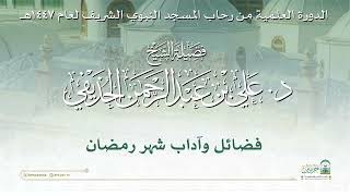 الدورة العلمية لفضيلة الشيخ د. علي بن عبدالرحمن الحذيفي بعنوان : فضائل وآداب شهر رمضان الاثنين 28-8-1447هـ